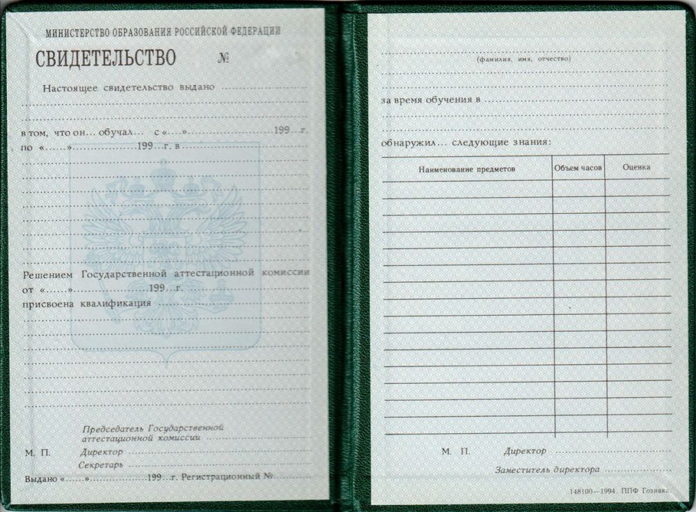 - дата прохождения курсов – заказчику виднее, в какие сроки это выглядело бы более правдоподобно, мы же впишем любые даты и подберем бланк стандарта того времени;